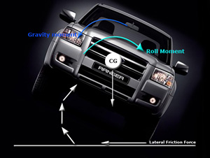 In contrast to that of a sedan, light commercial and four-wheel-drive vehicles have a much higher centre of gravity (CG). Combined with this, new levels of ride comfort, power, and quietness make it far easier to travel at higher speeds than the equivalent type of vehicle in the past. At these speeds, they have a much higher risk of roll over type accidents in situations where evasive or correct steering action is needed. Added to this, the vehicles tendency to carry higher loads reduces the driver's ability to slow the vehicle before encountering such circumstances. |